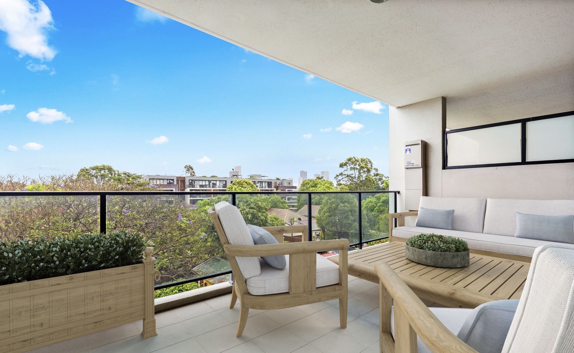 Pet-friendly complex with expansive grassed areas and a stunning communal rooftop with panoramic views